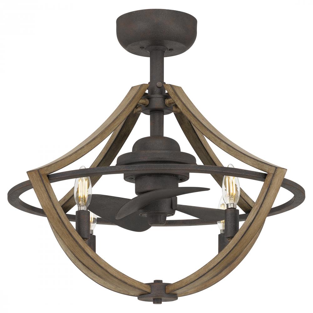 Though crafted from steel, the Shire fandelier features an enchanting design that mimics the look and patina of wood amid a rustic black finish. With its diamond-like shape and interior fan, Shire is a union of form and function, providing refreshing air w
