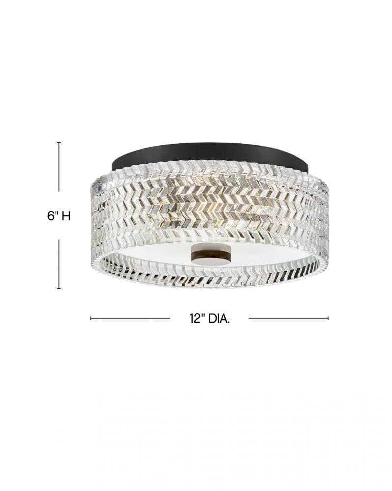 Traditional elegance with a modern edge defines Elle’s graceful design. Rich chevron cut glass provides interesting light refraction and is a dramatic focal point whether the light is on or off. The gleaming metal finish adds to the glam design that gives a touch of radiance to any space.
