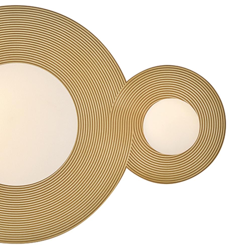 Evoking the concepts of eternity and limitlessness, Rhea’s continuously flowing loops of refined metal create a ribbed texture along its gracefully curved backplate. Dimmable, integrated LED lamping brings comfortable energy into any bathroom or small interior space. Rhea can be installed vertically, horizontally, or even as a flush mount on a ceiling.