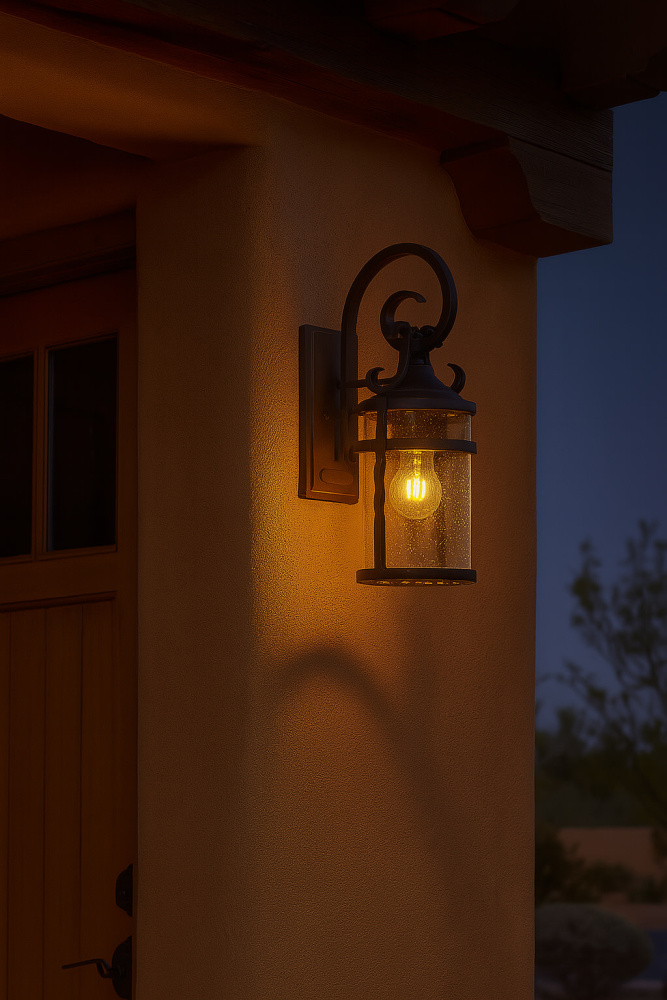 Casa features solid aluminum construction with twisted wrought iron details and hand-forged scrollwork in an Olde Black finish to complete its rustic-chic appeal with a Southwestern flair.
