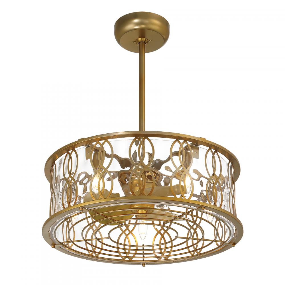 Get an unbelievably cool lighting look with the Savoy House Snowden 5-light Fan D'Lier. Its structure features an intricate curving design that perfectly accentuates the glacier glass shade within. Finished in Burnished Brass. Snowden is 29" in height and 24" in width. It uses five candelabra size bulbs of up to 60 watts per bulb. LED bulbs are included.