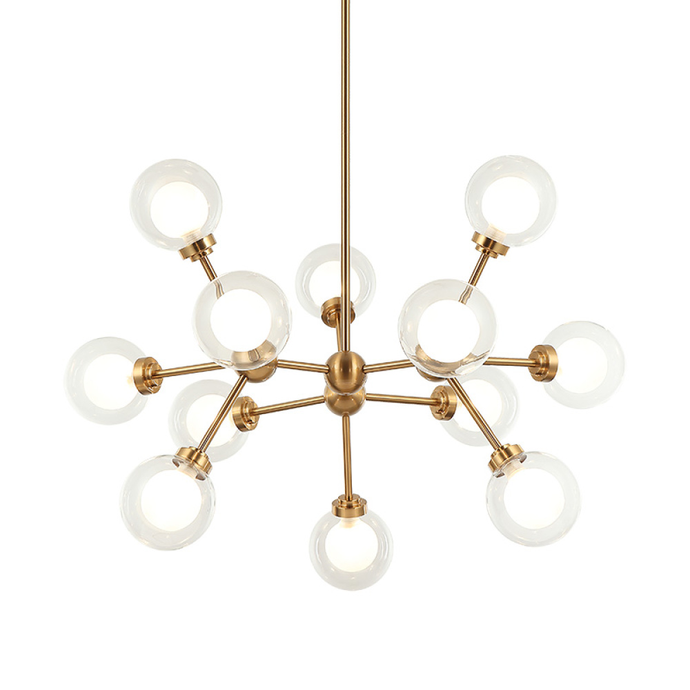 A chandelier inspired by the solar system, the Solaris comes with white opal inner glass and clear outer glass.The design typically aims to capture a celestial, orbital aesthetic.