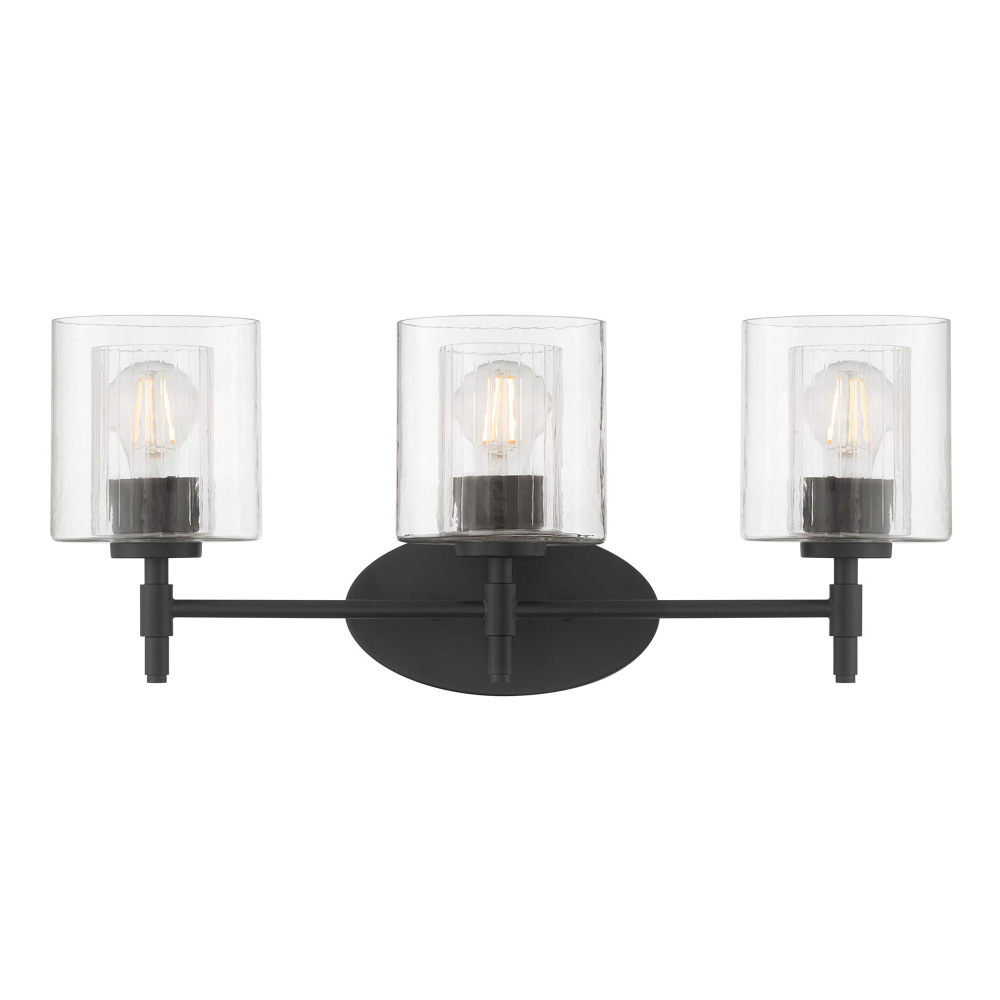 Featuring a Matte Black finish with Clear Ribbed & Clear Vintage dual layered glass shades.
