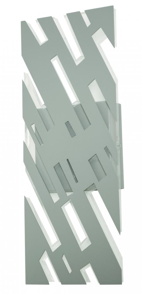 Contemporary wall art LED sconce. Metal pan and face plate with geometric cut pattern. Indirect edge lit diffuser allows for a dramatic wall wash effect. Vertical or horizontal mounting.