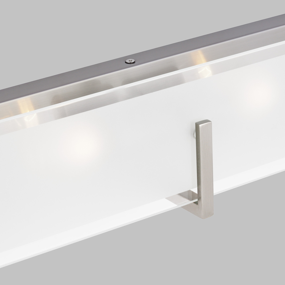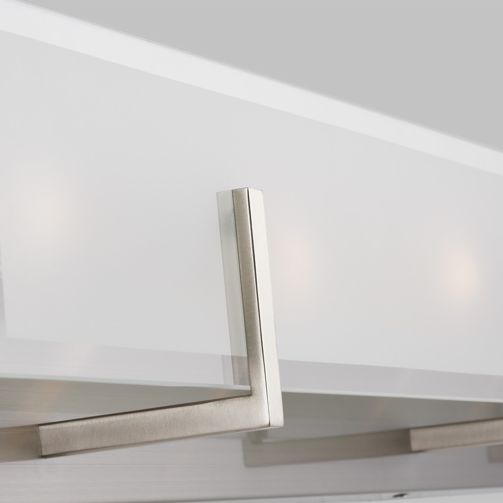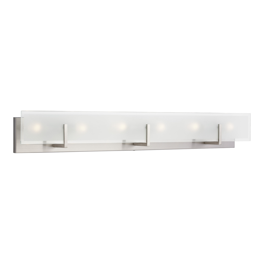 The Syll six light vanity fixture in brushed nickel provides abundant light for your bath vanity, while adding a layer of today's style to your interior design. Syll features a stylish frame with brilliant frosted beveled glass panels.