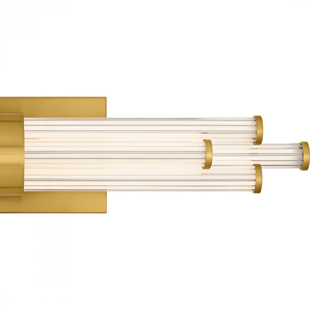 The Talbott bath light features a striking modern design with a sleek, minimalist aesthetic. The rectangular backplate contrasts with the series of parallel cylindrical acrylic rods, creating a unique and eye-catching visual. Each rod houses an integrated