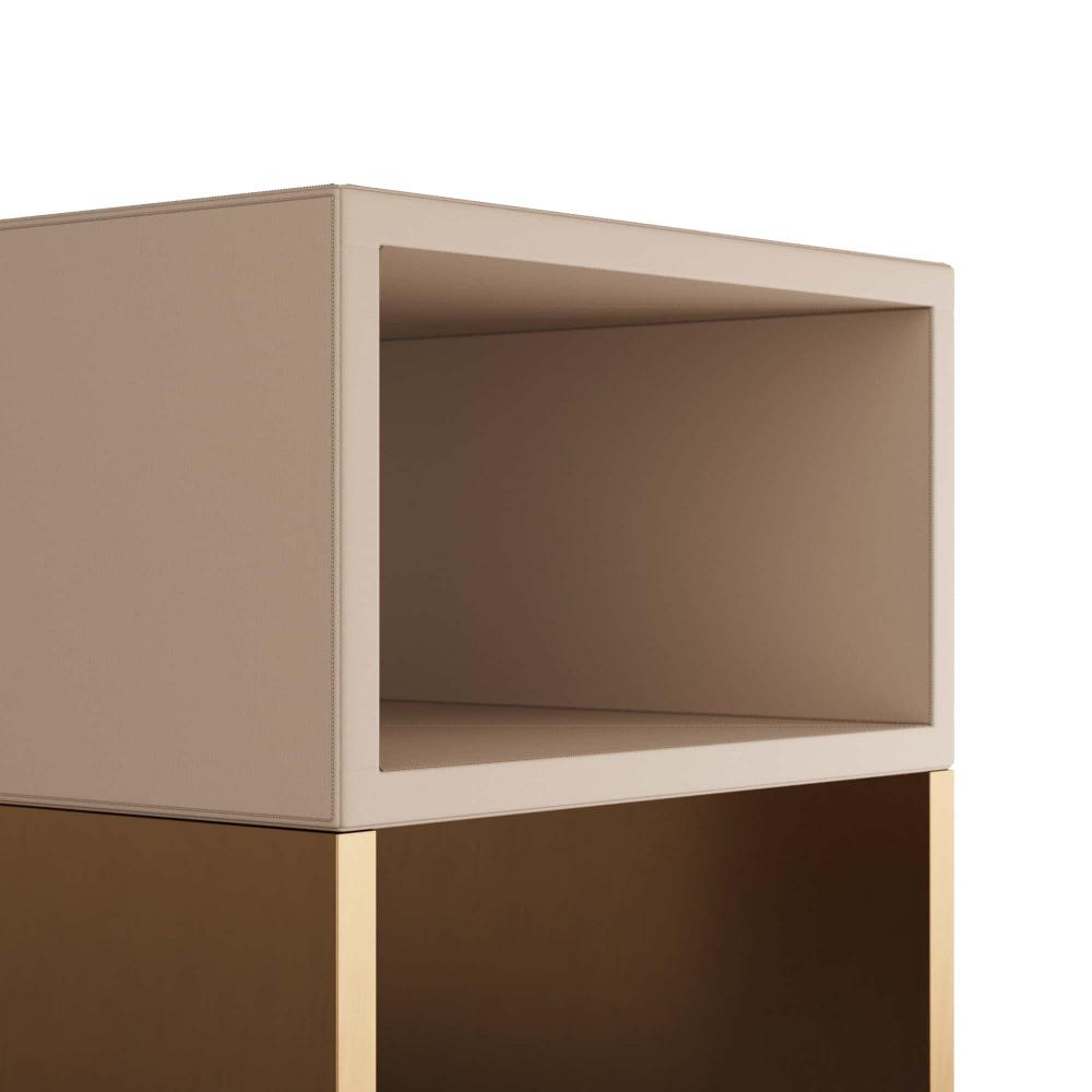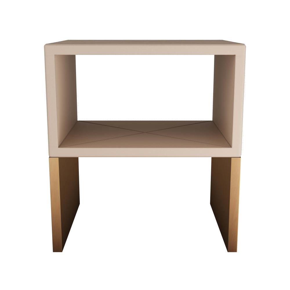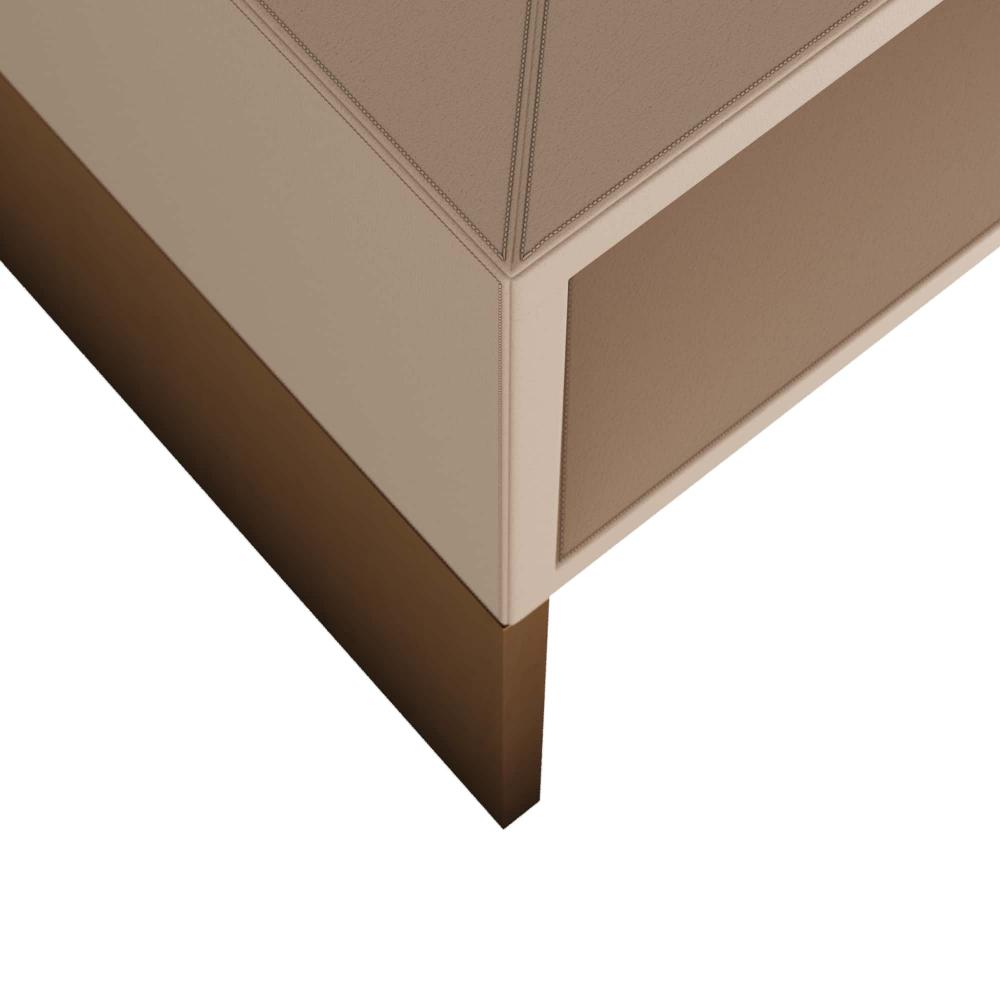 CREATED IN A CLASSIC WATERFALL SILHOUETTE, OUR TALCON END TABLE SLIPS GRACEFULLY INTO ANY SPACE. THE SLEEK ACCENT TABLE IS DRESSED IN DOVE LEATHER AND FEATURES TAILORED STITCHING ALONG THE TOP. ANTIQUE BRASS CLADDING WRAPS THE SLED LEGS CREATING STRIKING VISUAL CONTRAST. FINISH WILL VARY.