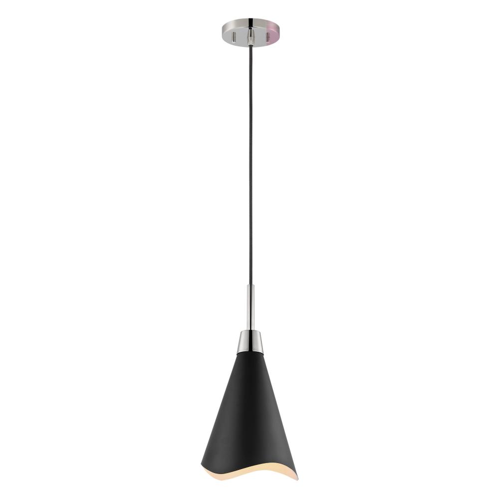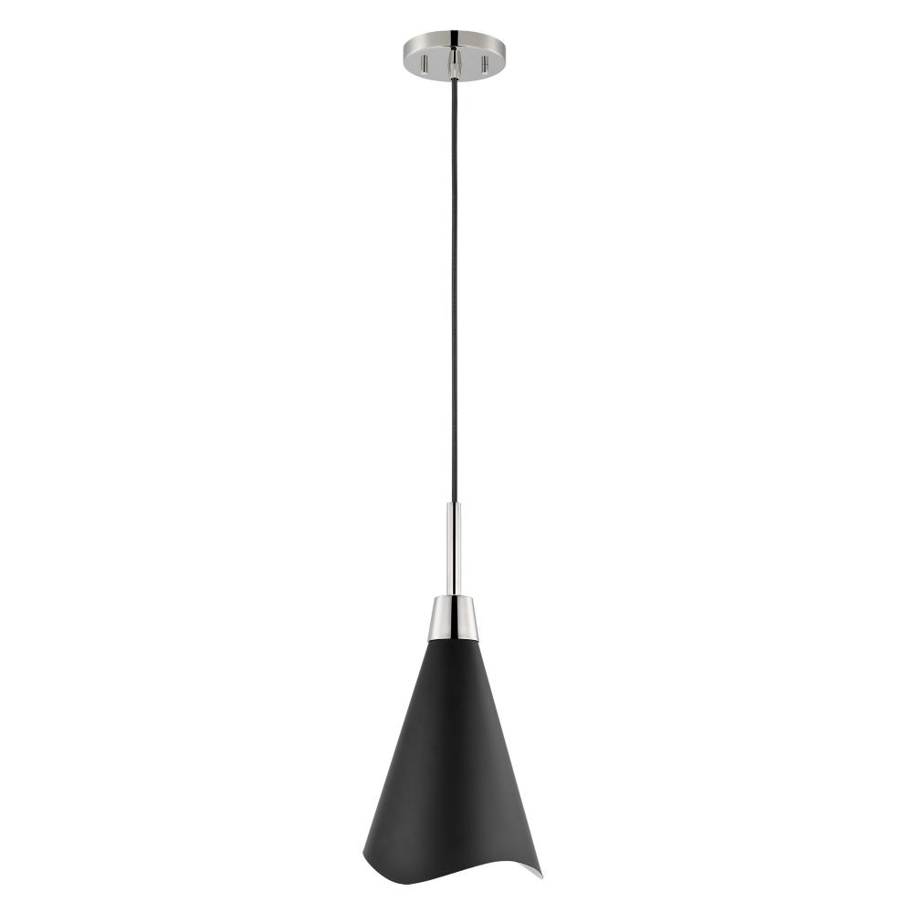 The Tango 60-7478 large pendant proves that simple style does not have to be boring. It features polished nickel accents on the base, cable collar and canopy, which gives the design some pop. The matte black metal shade is laser-cut on its edge in a subtle