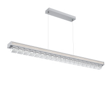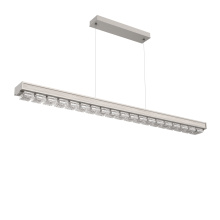 The 2,500-year old art of glass mosaic tiling is brilliantly brought to light in the modern-styled Tessera Linear Chandelier. Choose from five tile motifs in artisan cast crystal glass, two wood-inspired accent motifs, and several finishes. Tessera fixtures are illuminated with 93 CRI integrated LED and are available in 2700K or 3000K color temperature.