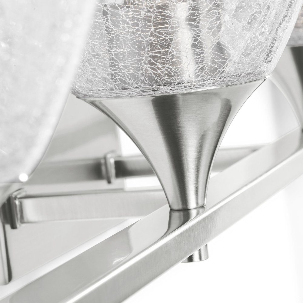 Crafted with Steel in a Brushed Nickel finish with clear crackle glass shades