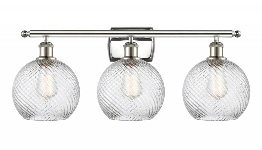 Athens Twisted Swirl 8" - 3 Light 26" Bath Vanity Light - Incandescent Bulb - Polished Nic