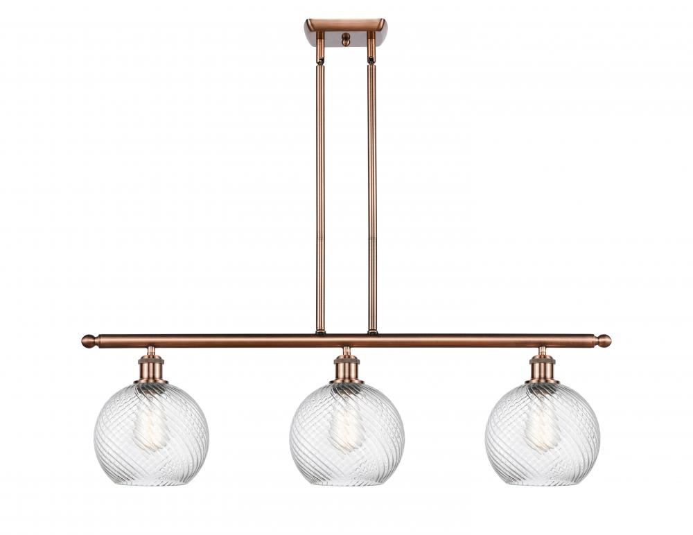 Athens Twisted Swirl 8" - 3 Light 36" Island Light - Incandescent Bulb - Antique Copper Fi
