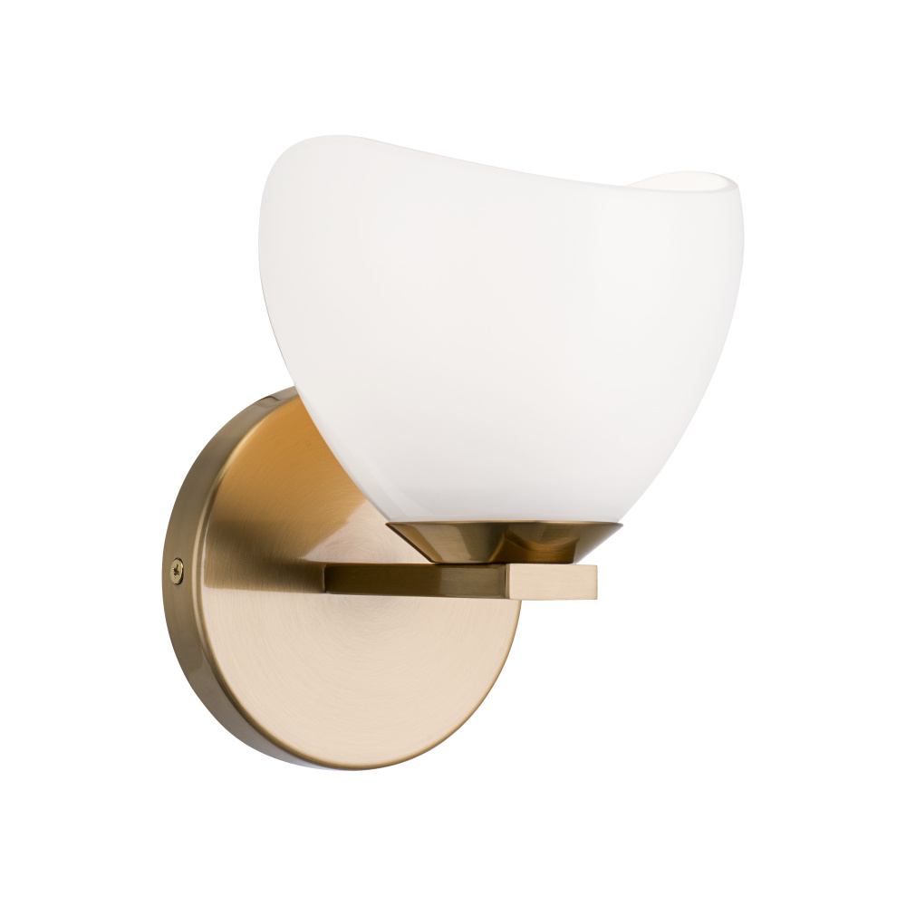 Uptowne is a dazzling family with distinctive curved opal glass. Available in Aged Gold Brass or Black.