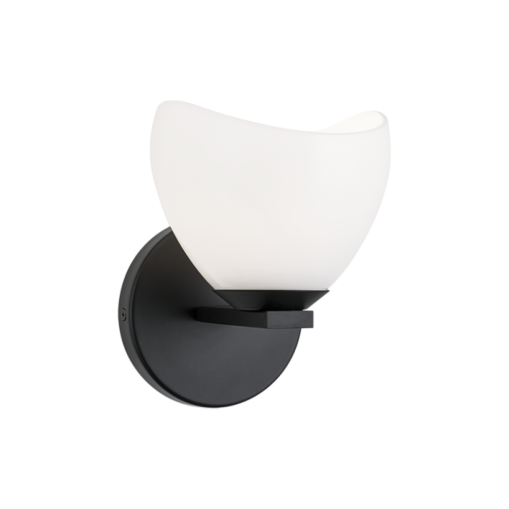 Uptowne is a dazzling family with distinctive curved opal glass. Available in Aged Gold Brass or Black.