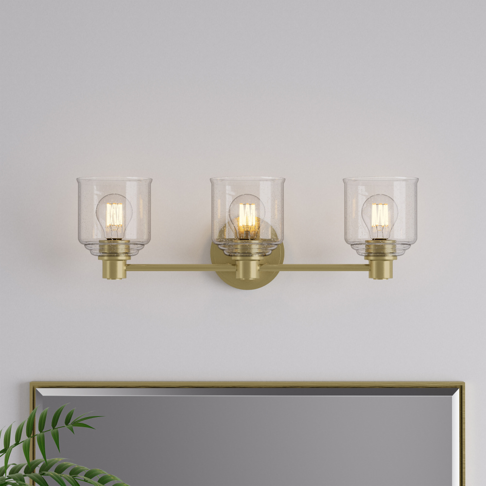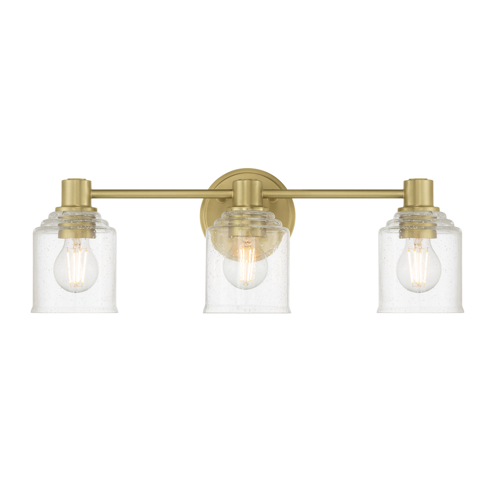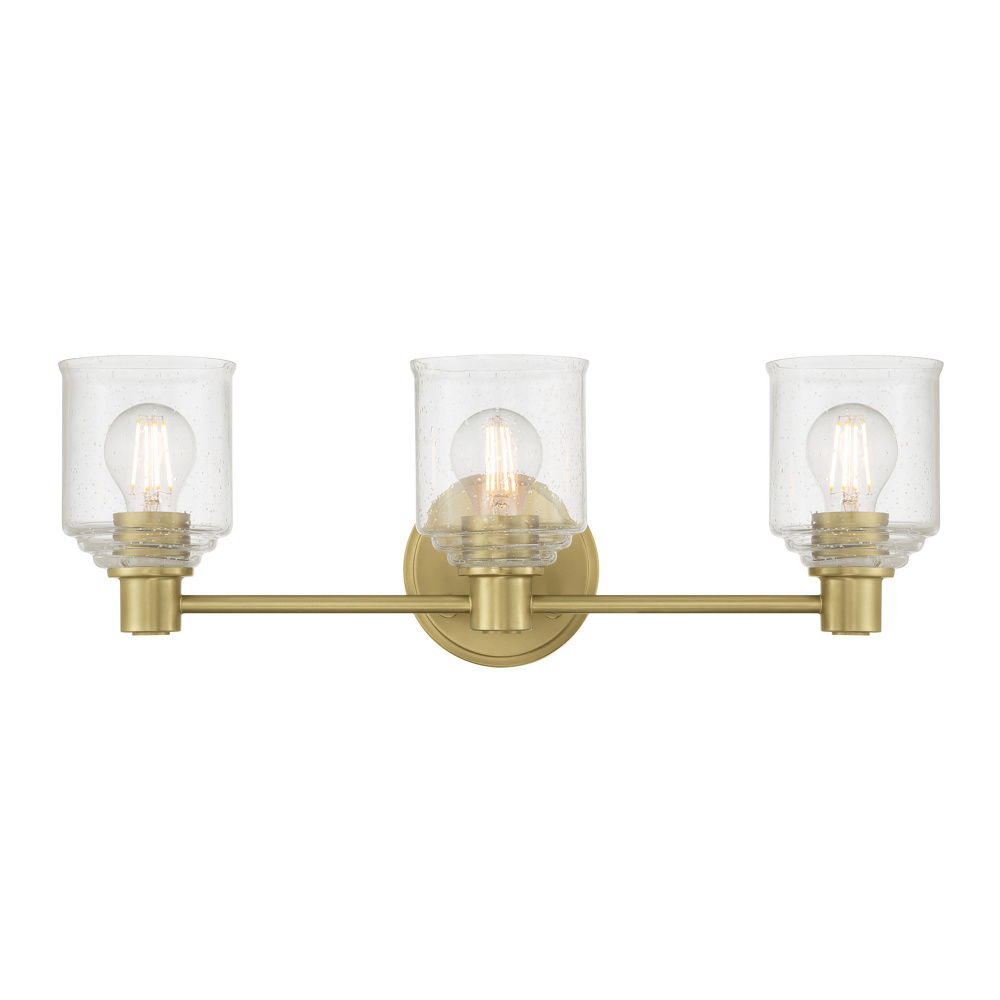 Featuring a Vintage Brass finish with a Clear Seeded glass shade.