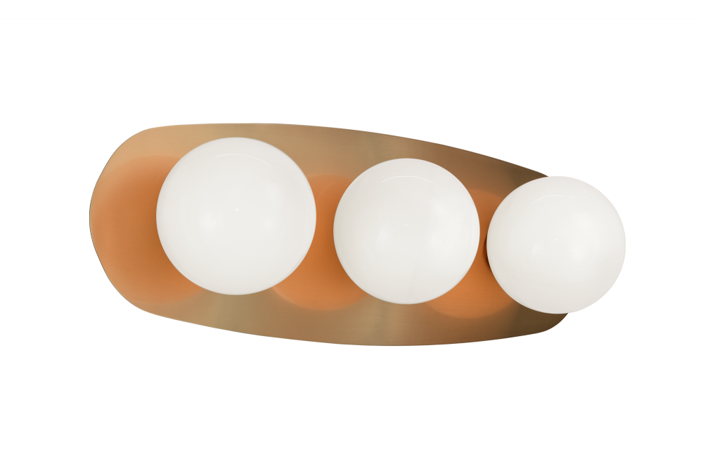 An 80’s inspired design collection. The unusual and unique shape of the canopy is highlighted by the bold contrast of the Opal glass. Razz is a versatile collection - Truly a statement piece. Available in vanity and flush mount.