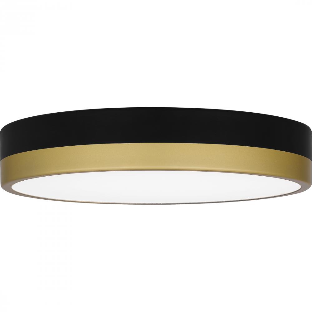 The Weldin flush mount is as smart as it is sleek. This design features an integrated light source for a dependable glow in entryways, hallways, or home offices. Two color palettes — either matte black and gold, or matte black and white — complement a