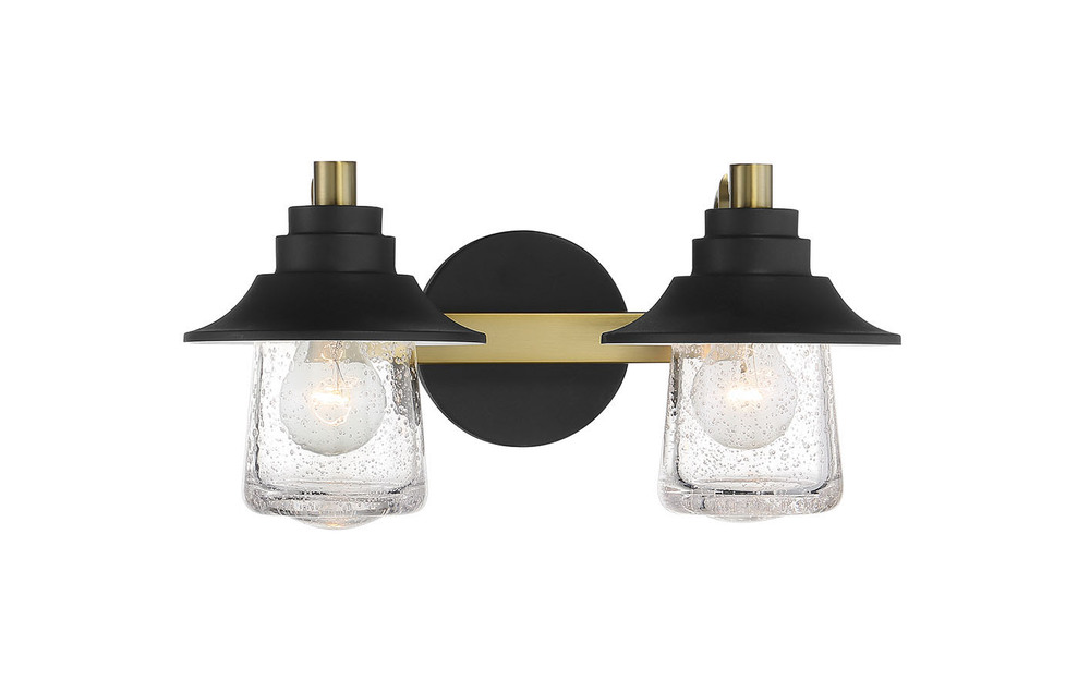 2 Light Bath in Sand Coal with Soft Brass Finish and Clear Seedy Glass
