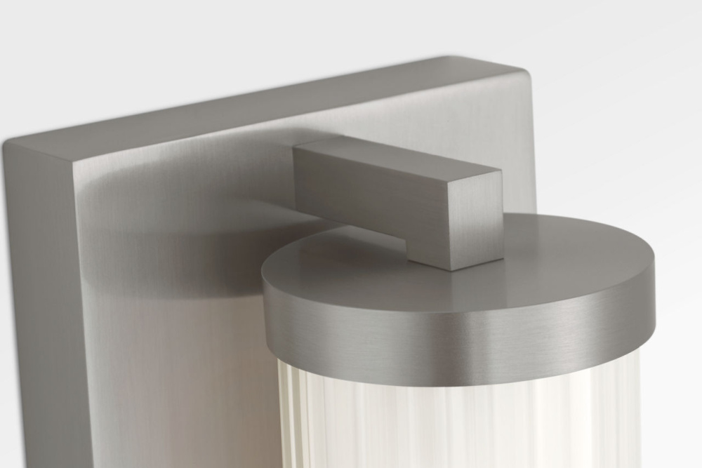 The Weston 22" Vanity combines linear symmetry with material depth, featuring a ribbed glass lens framed by a full-length metal backplate. Dedicated LED technology delivers efficient, ambient light while the textured diffuser enhances clarity and softens glare. suited for horizontal mounting in bathrooms and powder rooms where diffused illumination and visual structure are required.