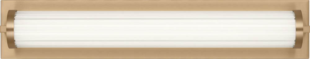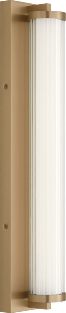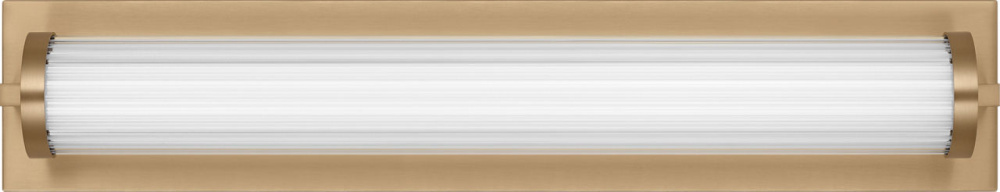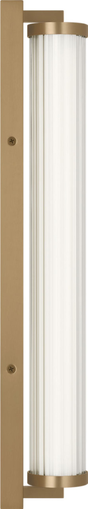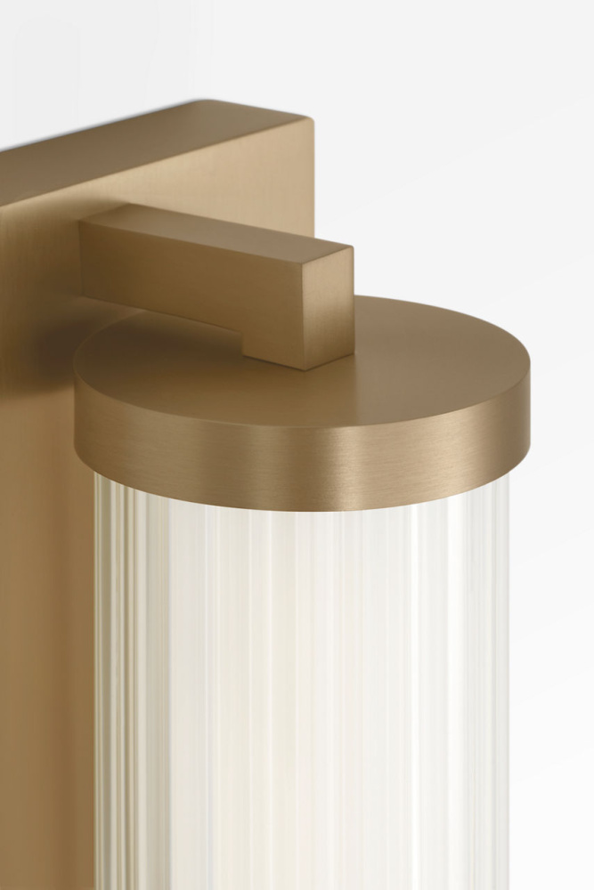 The Weston 22" Vanity combines linear symmetry with material depth, featuring a ribbed glass lens framed by a full-length metal backplate. Dedicated LED technology delivers efficient, ambient light while the textured diffuser enhances clarity and softens glare. suited for horizontal mounting in bathrooms and powder rooms where diffused illumination and visual structure are required.