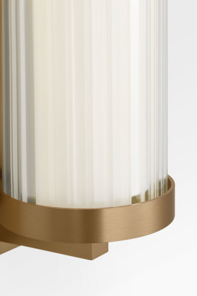 The Weston 34" Vanity combines linear symmetry with material depth, featuring a ribbed glass lens framed by a full-length metal backplate. Dedicated LED technology delivers efficient, ambient light while the textured diffuser enhances clarity and softens glare. suited for horizontal mounting in bathrooms and powder rooms where diffused illumination and visual structure are required.