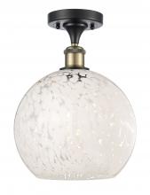 White Mouchette - 1 Light - 10 inch - Antique Brass - White Mouchette Shade - Semi-Flush Mount