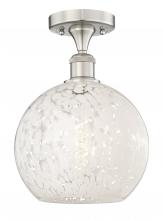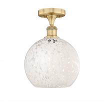 White Mouchette - 1 Light - 10 inch - Antique Brass - White Mouchette Shade - Semi-Flush Mount