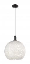 White Mouchette - 1 Light - 14 inch - Antique Brass - White Mouchette shade - Cord hung - Mini Pendant
