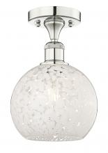White Mouchette - 1 Light - 8 inch - Antique Brass - White Mouchette Shade - Semi-Flush Mount