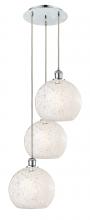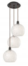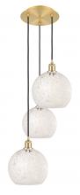 White Mouchette - 3 Light - 17 inch - Antique Brass - White Mouchette Shade - Cord Hung - Multi Pendant