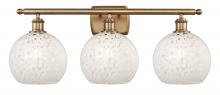 White Mouchette - 3 Light - 28 inch - Antique Brass - Bath Vanity Light
