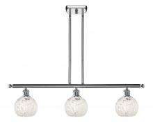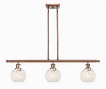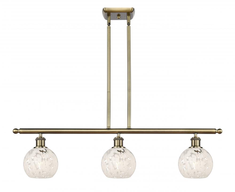 White Mouchette - 3 Light - 36 inch - Antique Brass - White Mouchette Shade - Stem Hung - Island Light