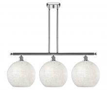 White Mouchette - 3 Light - 39 inch - Antique Brass - White Mouchette Shade - Stem Hung - Island Light