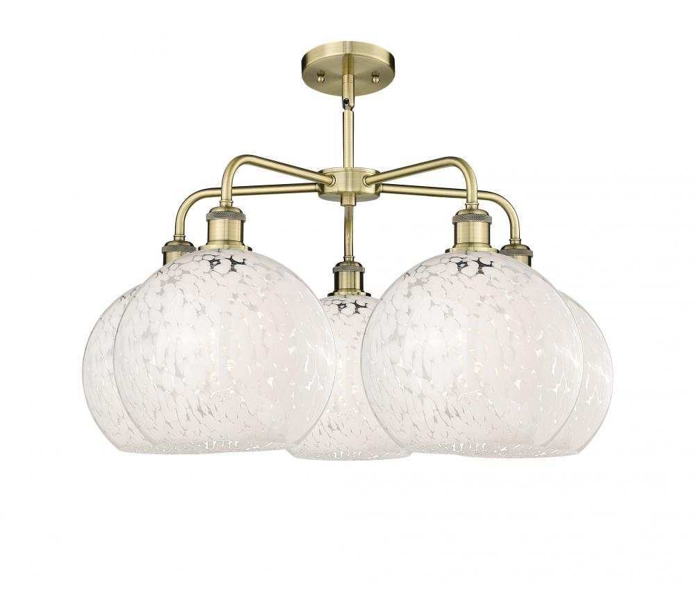 White Mouchette - 5 Light - 28 inch - Antique Brass - Chandelier