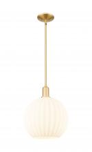 White Venetian - 1 Light - 12 inch - Antique Brass - White Venetian shade - Stem hung - Mini Pendant