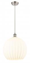 White Venetian - 1 Light - 14 inch - Antique Brass - White Venetian Shade - Cord Hung - Pendant