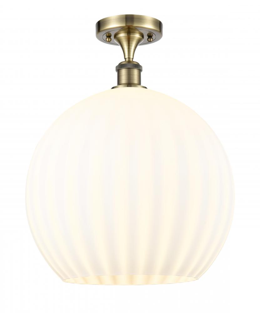 White Venetian - 1 Light - 14 inch - Antique Brass - White Venetian Shade - Semi-Flush Mount