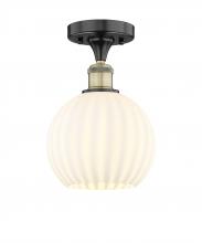White Venetian - 1 Light - 8 inch - Antique Brass - White Venetian Shade - Semi-Flush Mount
