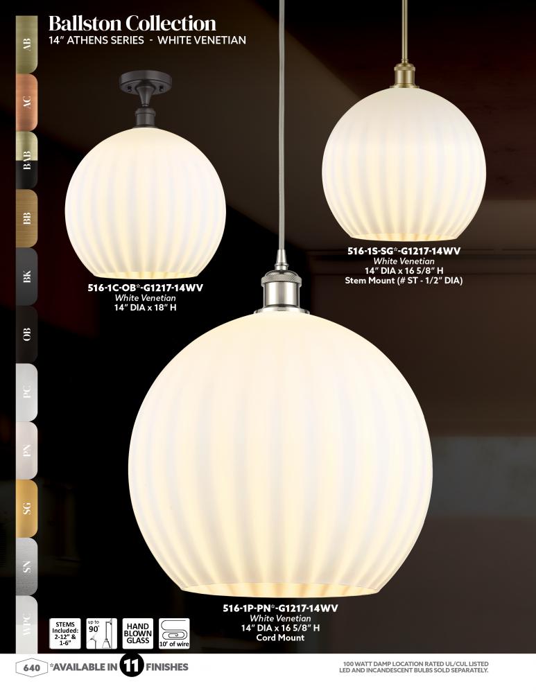 White Venetian - 14 inch - White Venetian Shade - Glass
