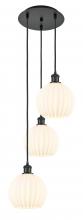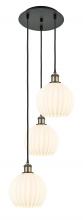 White Venetian - 3 Light - 13 inch - Black Antique Brass - White Venetian Shade - Cord Hung - Multi Pendant