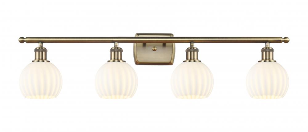 White Venetian - 4 Light - 36 inch - Antique Brass - White Venetian Shade - Bath Vanity Light