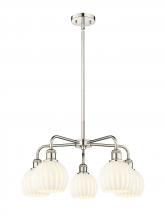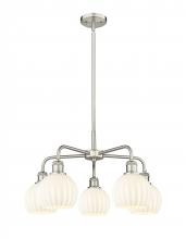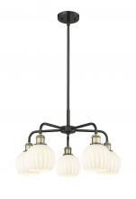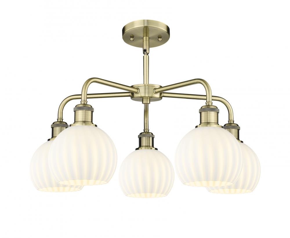 White Venetian - 5 Light - 24 inch - Antique Brass - White Venetian Shade - Chandelier