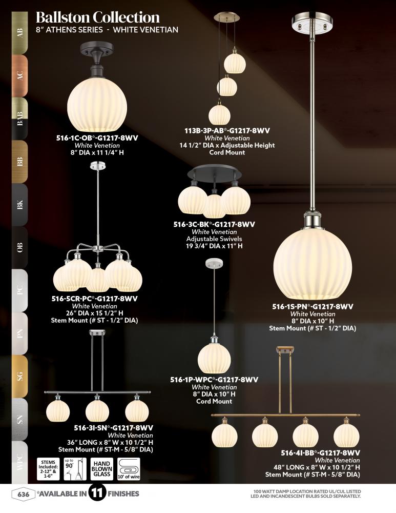 White Venetian - 1 Light - 8 inch - Antique Brass - Stem hung - Mini Pendant