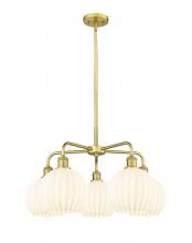White Venetian - 5 Light - 26 inch - Antique Brass - White Venetian Shade - Chandelier