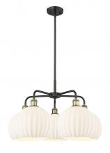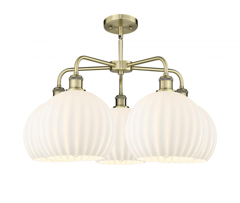 White Venetian - 5 Light - 28 inch - Antique Brass - White Venetian Shade - Chandelier