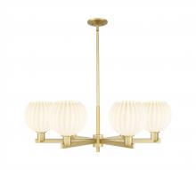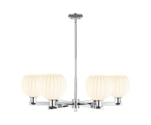 White Venetian - 6 Light - 38 inch - Antique Brass - White Venetian shade - Stem hung - Chandelier