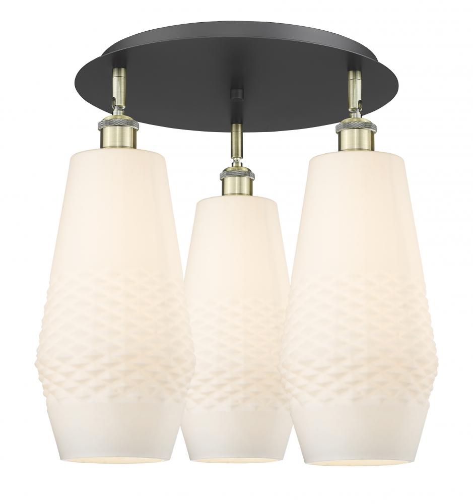 Windham - 3 Light - 19 inch - Black Antique Brass - White Shade - Flush Mount