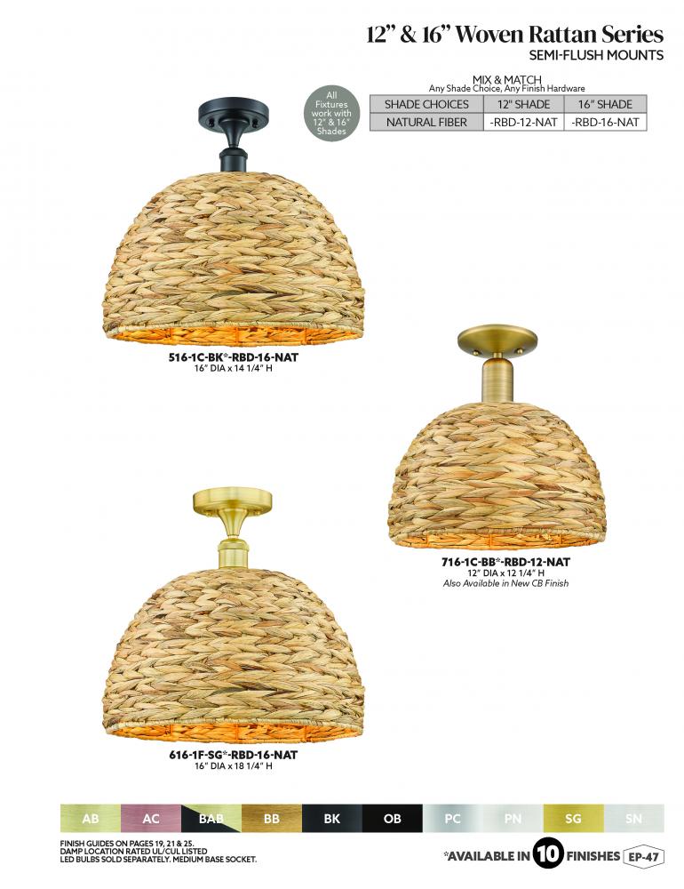 Woven Rattan - 1 Light - 12 inch - Antique Brass - Natural shade - Semi-Flush Mount