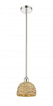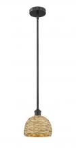 Woven Rattan - 1 Light - 8 inch - Antique Brass - Natural Shade - Mini Pendant
