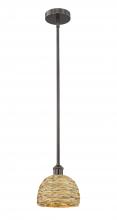 Woven Rattan - 1 Light - 8 inch - Antique Brass - Mini Pendant